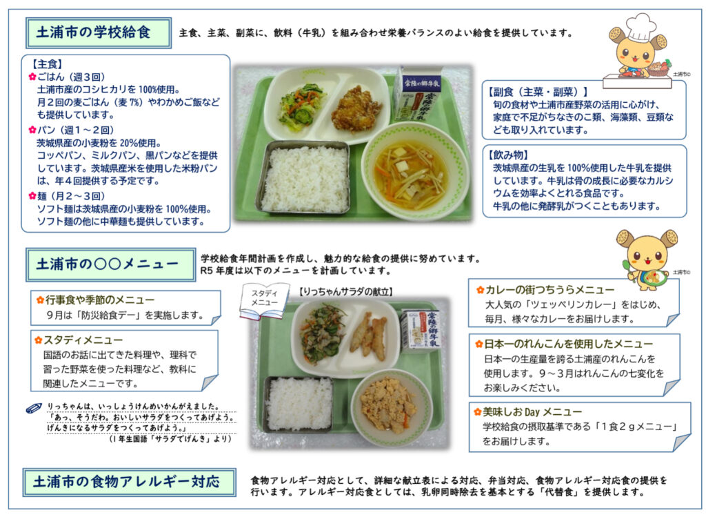 さらに、年間給食計画に基づき、行事食や季節のメニュー、教科と連動したスタディメニューなど、食育の視点を重視した取り組みも行われています。日本一の生産量を誇る土浦産れんこんを使った献立や、“カレーの街”としての特色あるメニューも、子どもたちに親しまれています。